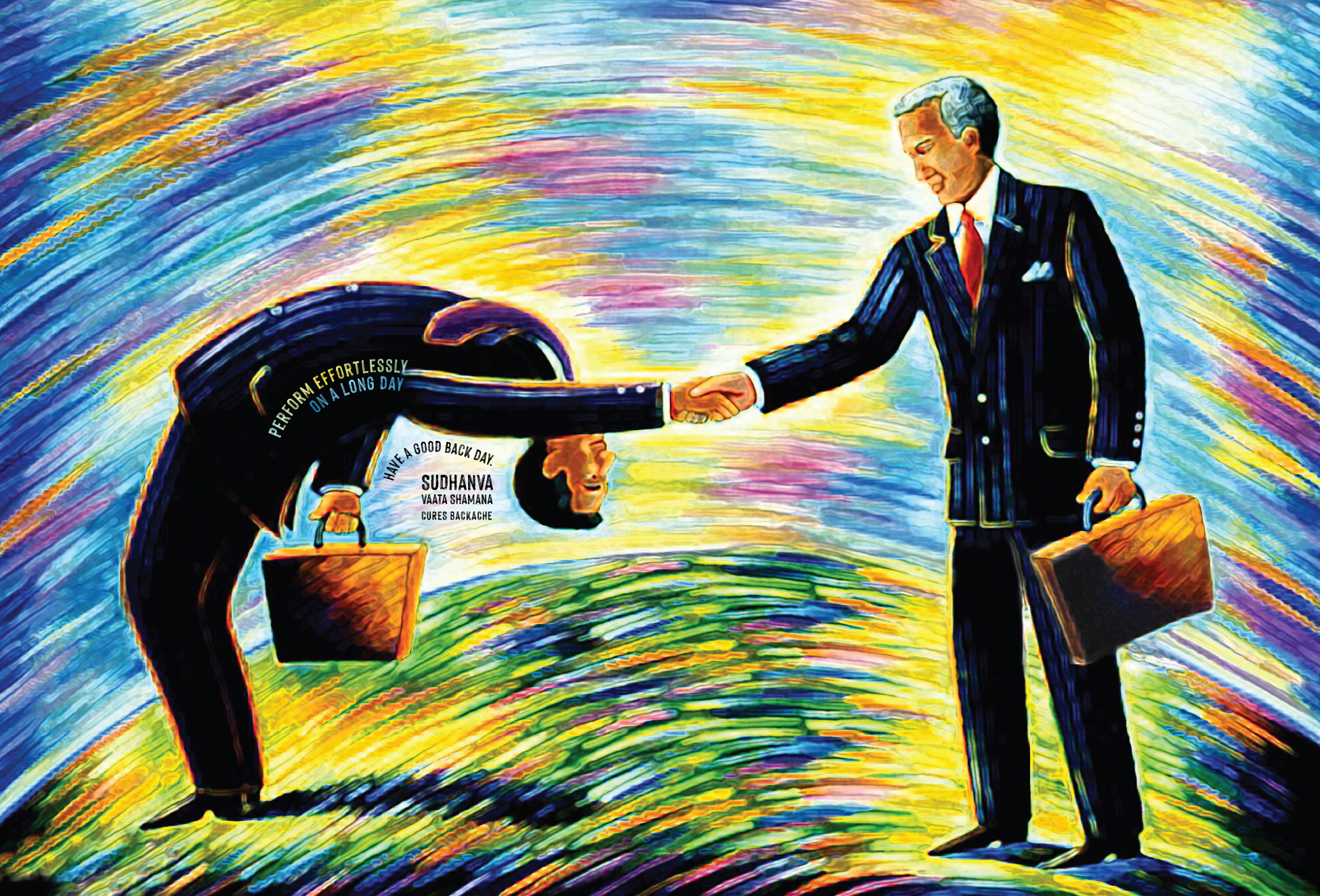 Idea: "Have a good back day". Sudhanava Healthcare's Vaatha Shamana cures backache so that you can perform effortlessly and make it look easy even on tough day.