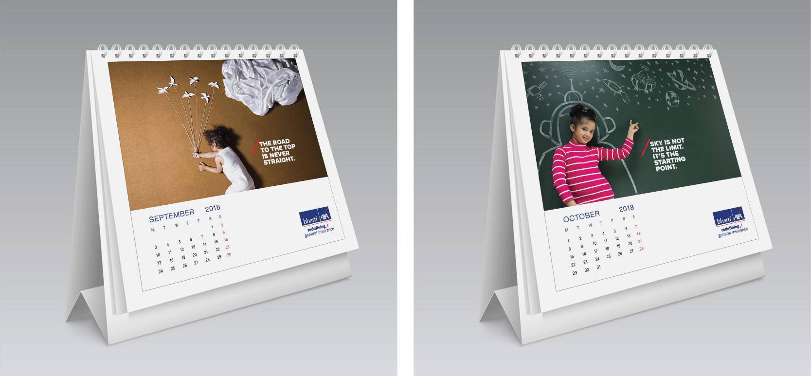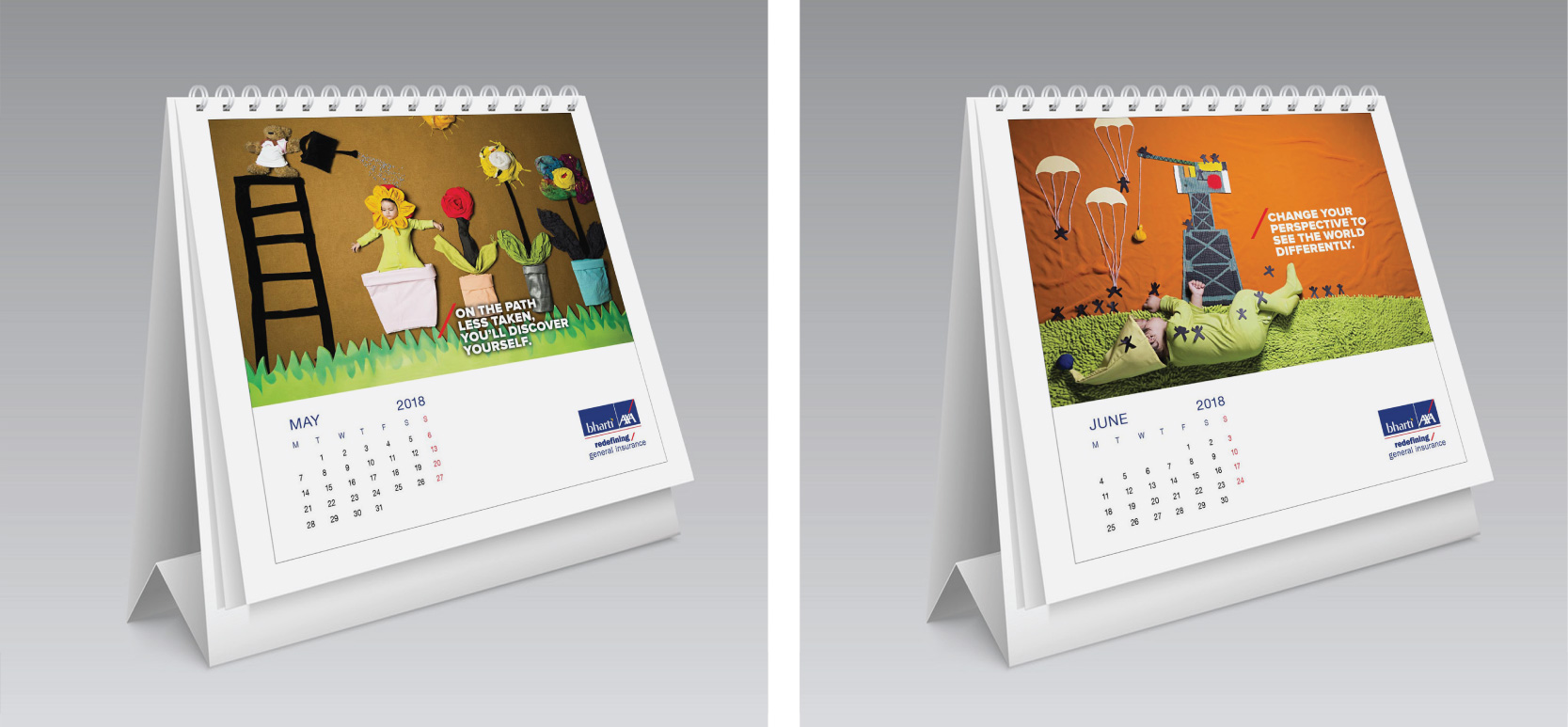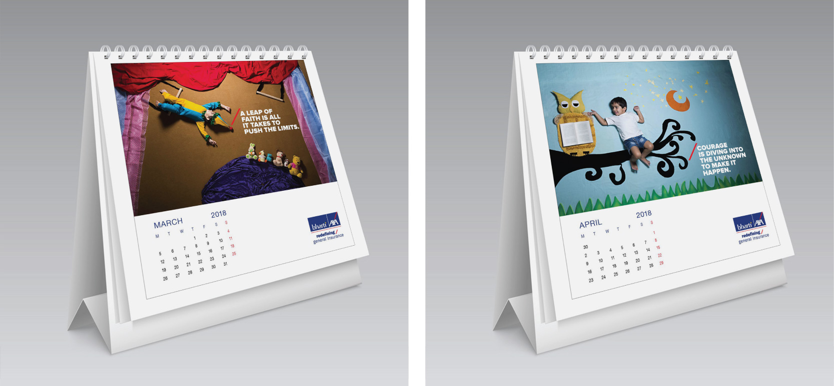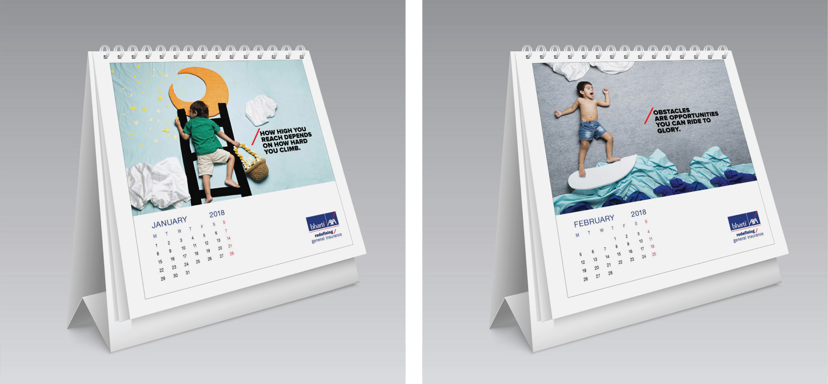 Calendar design with images depicting achievement to motivate the employees throughout the year. The idea was to show kids in the natural environment forming an image to communicate courage, reach, obstacles, limits, perspective, path etc.