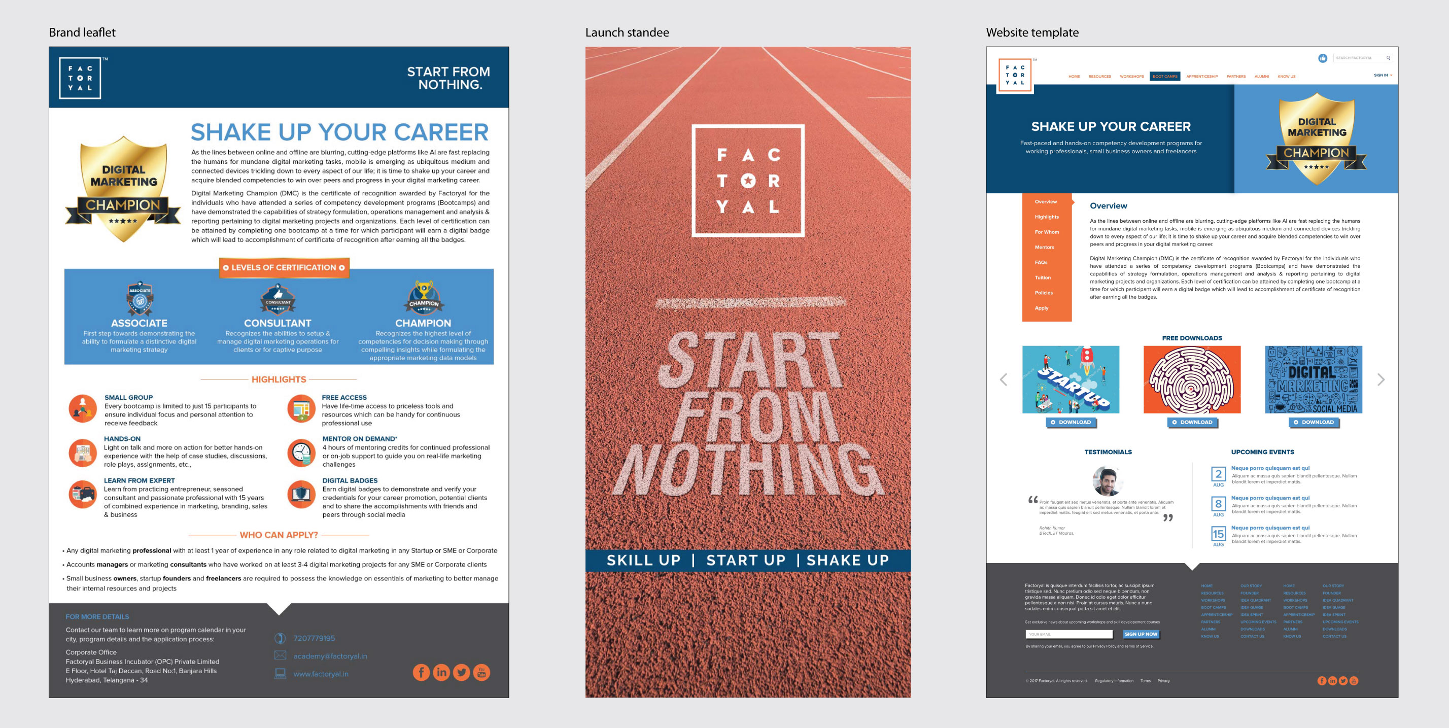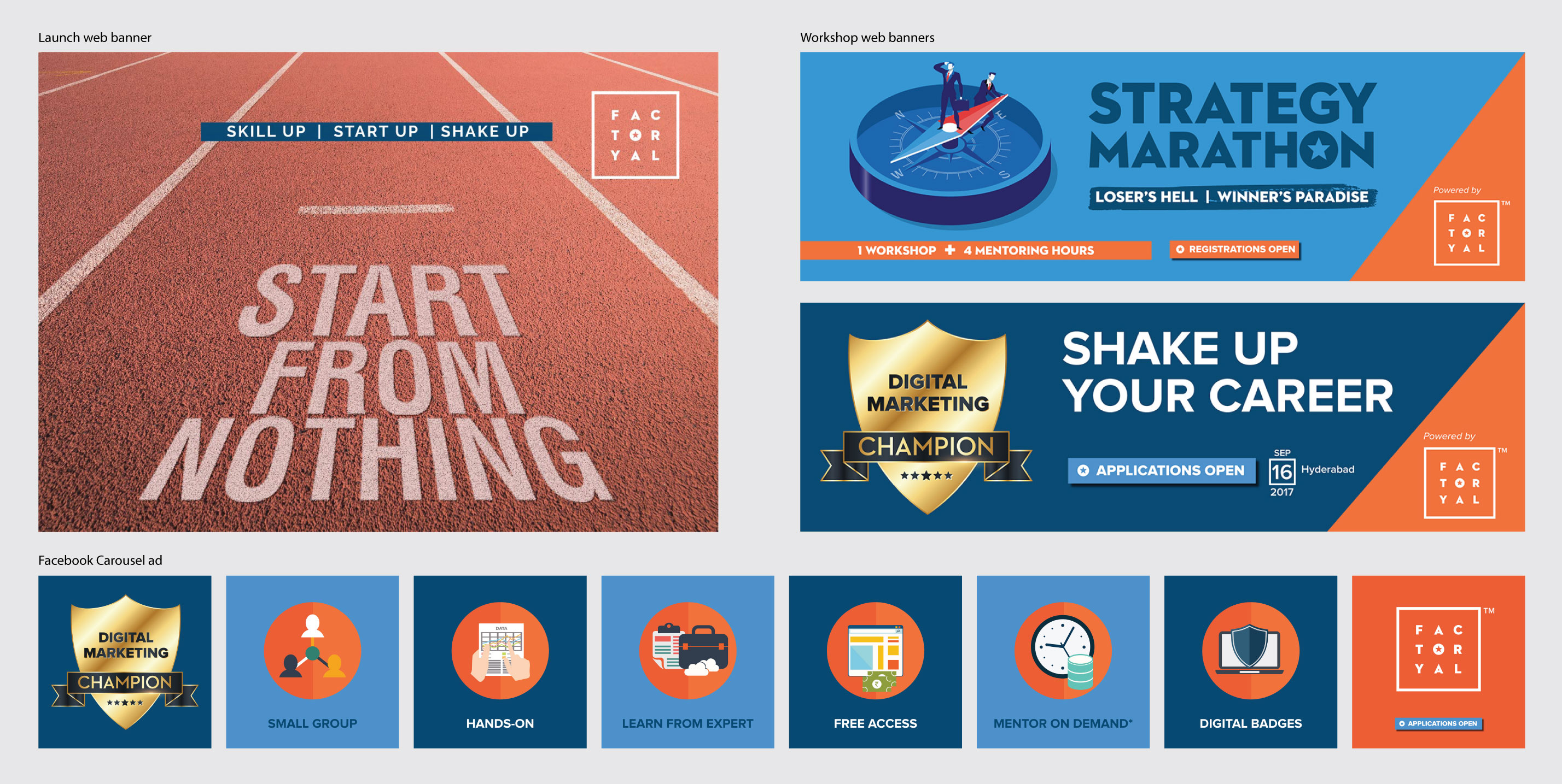 Factoryal is a skill development and career transformation catalyst founded by a seasoned consultant and entrepreneur. They aim to mentor entrepreneurial capabilities among first-generation entrepreneurs and to build skills & competencies specializing in most in-demand careers pertaining to digital marketing, e-commerce and b2b sales. They strive to foster a flourishing community of entrepreneurs and professionals to chase their dreams and passion. Factoryal launch work included brand look, launch creatives, social media creatives, web banners, website template and business tools design.