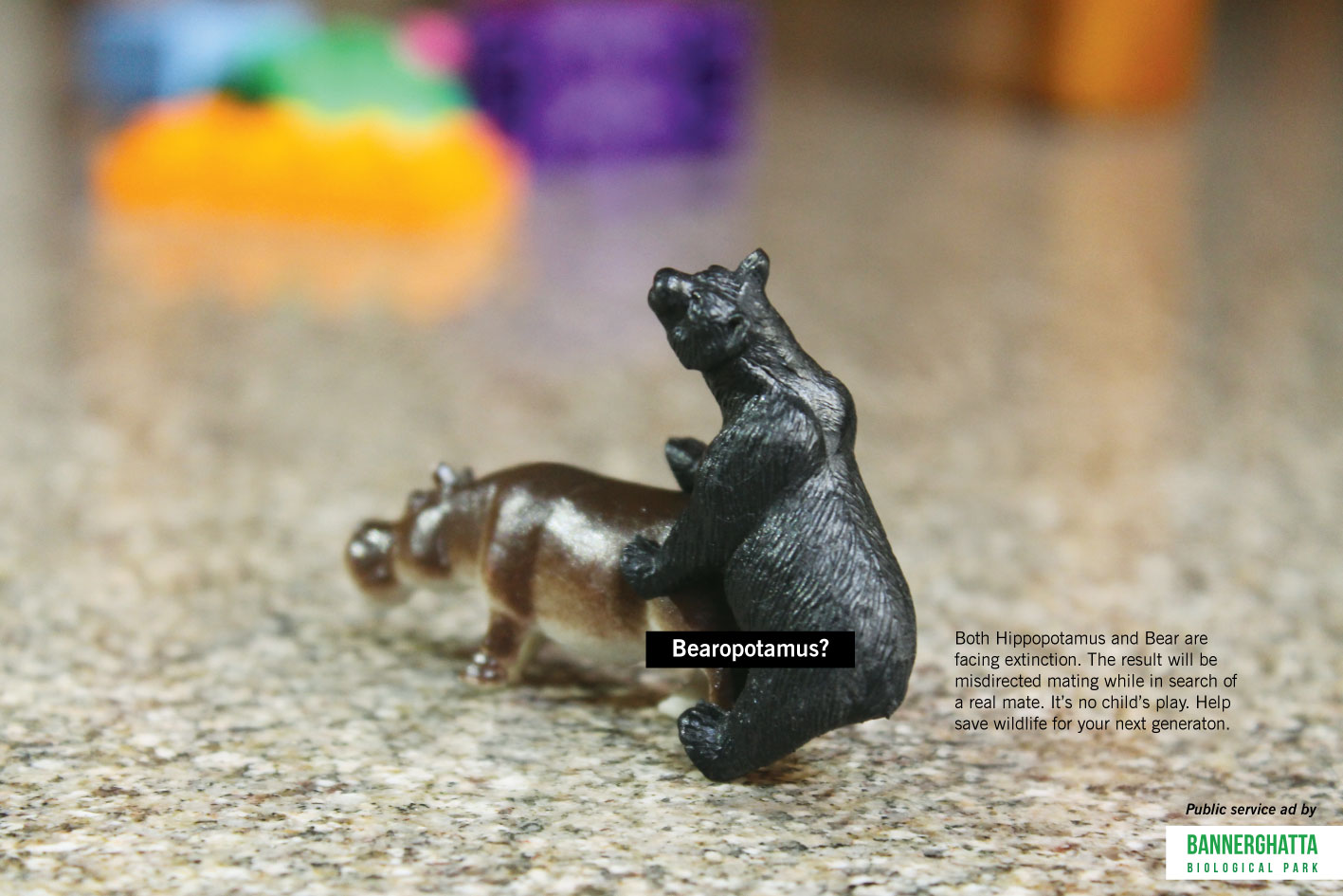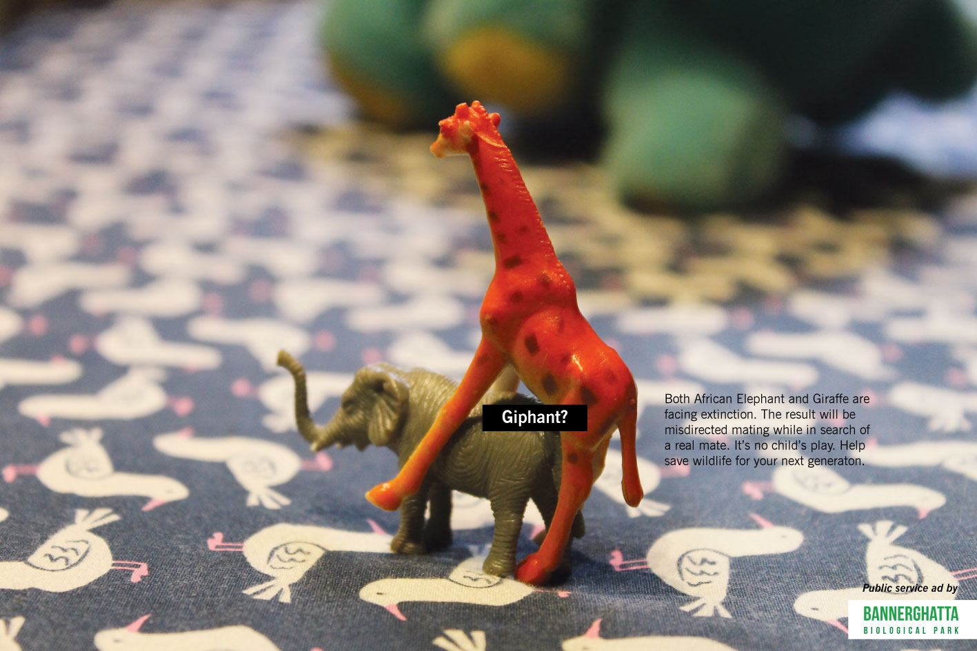 Tion? Giphant? Bearopotamus? Most of the wild animals are facing extinction. The result will be misdirected mating while in search of a real mate. It’s no child’s play. The ad was done in the interest of public to help save wildlife for the next generation.