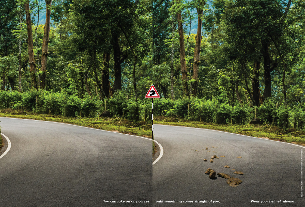 Sudhanva Ayurveda Healthcare took the initiative to educate the citizens to wear seat belt always because even if they are correct others might not be. To support this idea, the poster shows road sign of ‘Wear seat belt’ & ‘Wear helmet’ positioned smartly in both the scenarios of non-risk and risk to convey the message.