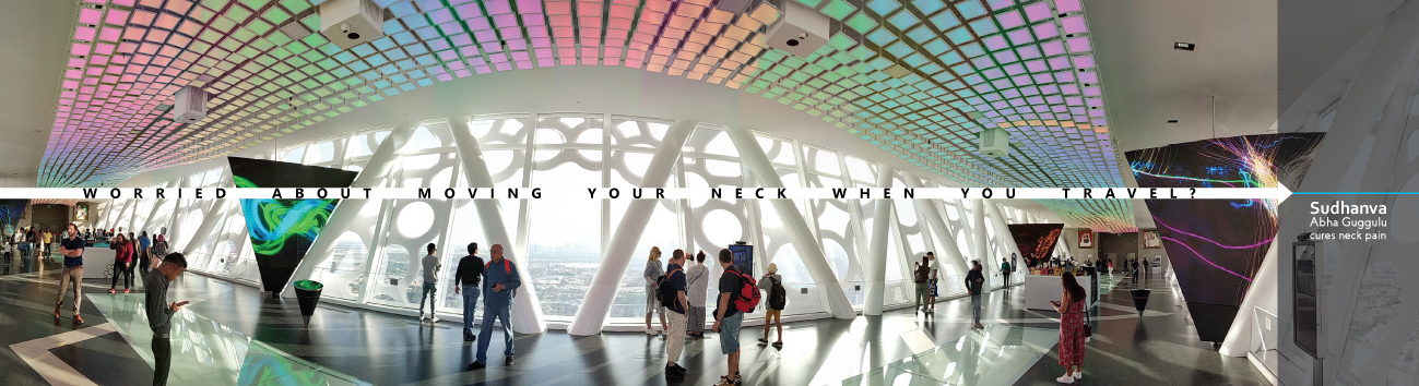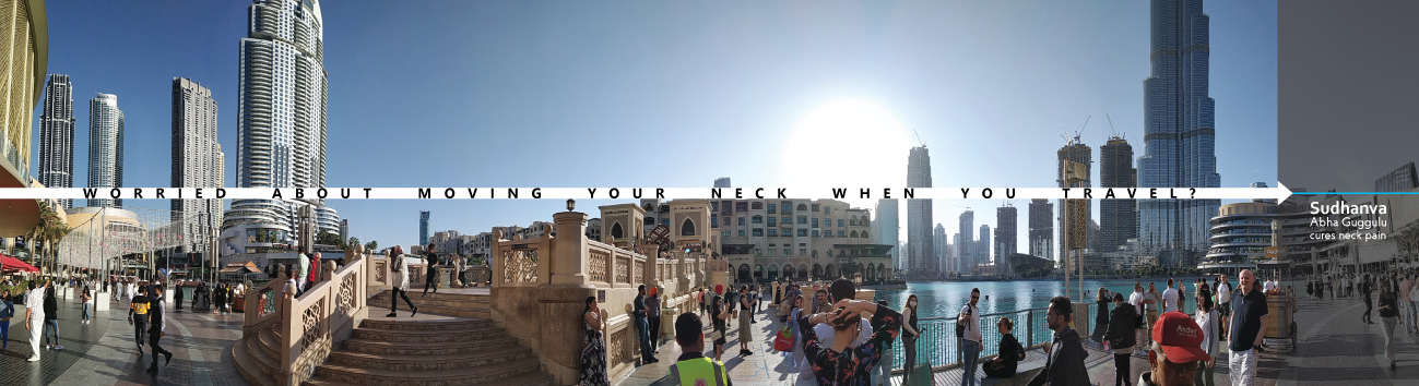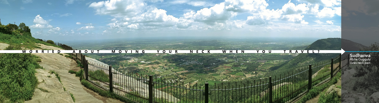 Panoramic posters of 8'X2' were put up in the Sudhanva healthcare center. When visitors tried to read the poster end to end, the action depicted the movement of neck and the accompanying pain, leading to the solution - a cure for neck pain.